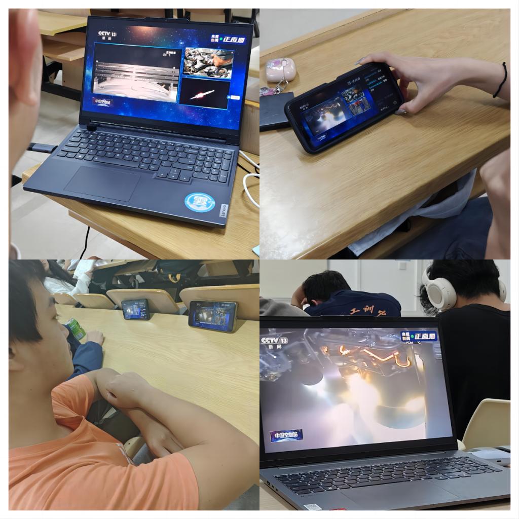2024年4月25日,神舟十八号载人飞船即将在酒泉卫星发射中心点火发射。公司组织全院员工在自习室、宿舍观看发射直播,发射时刻瞄准20时59分,“……5、4、3、2、1,点火!” 随着“点火”指令下达,刹那间,伴随着轰隆隆的巨响,橘红色的烈焰猛地从火箭底部喷涌开来,反推托举着神舟十八号船箭组合体拔地而起,冲向茫茫太空,瞬间成为夜空中最亮的“星”。同学们发出阵阵惊呼,纷纷被这宏伟的画面所震撼,也为我国探索宇宙的航天精神所折服。