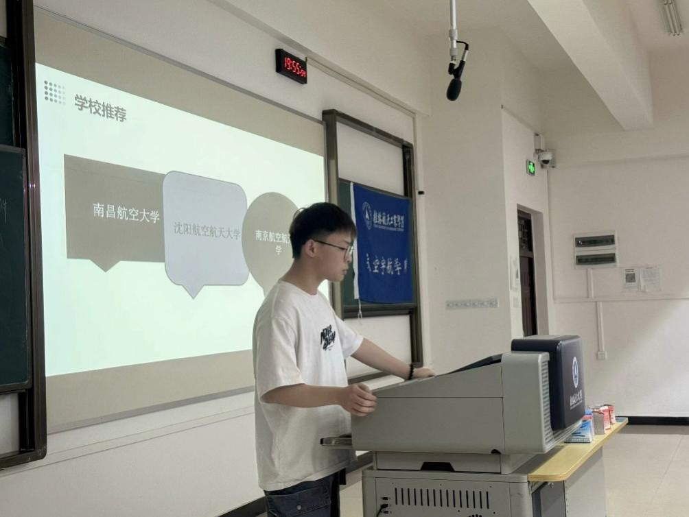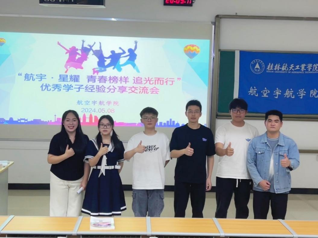 为充分发挥优秀青年学子的榜样引领作用,激发青年学子的学业生涯规划和职业生涯规划,推进“航宇·星”员工教育工程,学院于5月8日晚在探天楼B202教室举办了主题为“航宇·星耀 青春榜样 追光而行”的优秀学子经验分享交流会。交流会由2023级辅导员蓝彬主持。